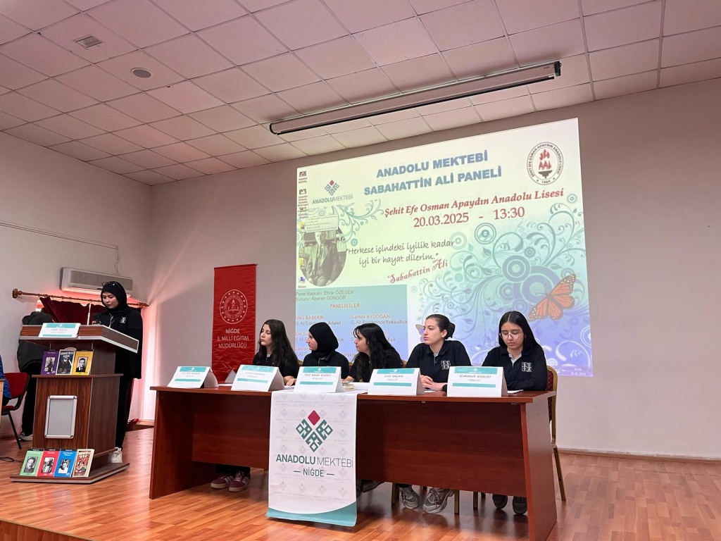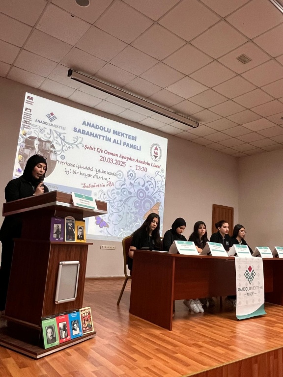 Anadolu Mektebi Yönetim Kurulu Başkanı Prof. Dr. Sami Güçlü himayelerinde yürütülen "Anadolu Mektebi Yazar Okumaları" programı kapsamında okulumuz Şehit Efe Osman Apaydın Anadolu Lisesinde Türk Dili ve Edebiyatı Öğretmeni Esin Altınel Dokuz rehberliğinde öğrencilerimiz Elif Sude Karamık, Gamze Aydoğan, Selvi Bahar Bildirici , Ülkü Başekin, Zehra Nur Bozkurt ve Ebrar Karakurt'un çalışmalarıyla Sabahattin Ali okul paneli düzenlendi.