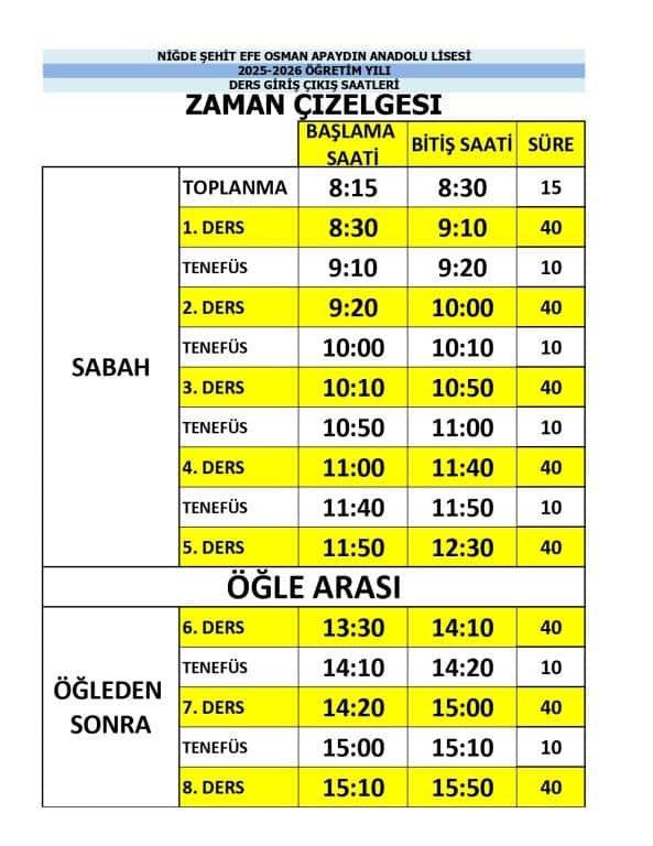 NİĞDE / MERKEZ - Şehit Efe Osman Apaydın Anadolu Lisesi